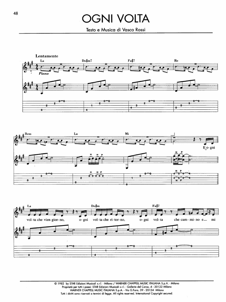 Ogni Volta Tab by Vasco Rossi. 30,778 views, added to favorites 112 times. Capo: no capo: Author Unregistered. Last edit on Feb 11, 2014. View interactive tab. Download Pdf #-----PLEASE NOTE-----# #This file is the author's own work and represents their interpretation of the# #song. You may only use this file for private study, scholarship, or.